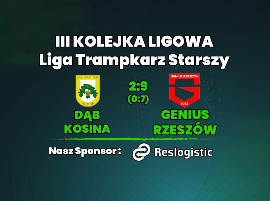 W meczu ligowym trampkarzy starszych, rozegranym na boisku w Kosinie, drużyna Dąba Kosina zmierzyła się z drużyną GENIUS Rzeszów. Wynik meczu 2:9 oraz wynik do przerwy 0:7 jasno pokazują, że goście byli zdecydowanymi faworytami tego spotkania.